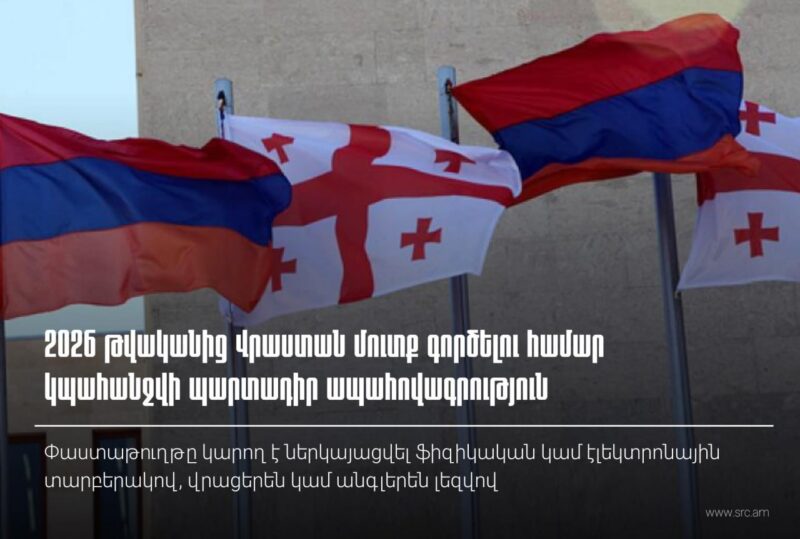 Պետական եկամուտների կոմիտեն հայտնում է, որ Վրաստանի արտաքին գործերի նախարարությունից ստացված տեղեկատվության համաձայն, 2026թ. հունվարի 1-ից Վրաստան մուտք գործող յուրաքանչյուր զբոսաշրջիկ սահմանային անցակետում պարտավոր է ներկայացնել առողջության և դժբախտ պատահարի ապահովագրությունը հավաստող փաստաթուղթ՝ ֆիզիկական կամ էլեկտրոնային տարբերակով։