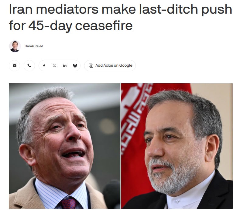 ԱՄՆ-ն, Իրանը և տարածաշրջանային միջնորդները քննարկում են 45-օրյա հրադադարի տարբերակը, հայտնում է Axios-ը։