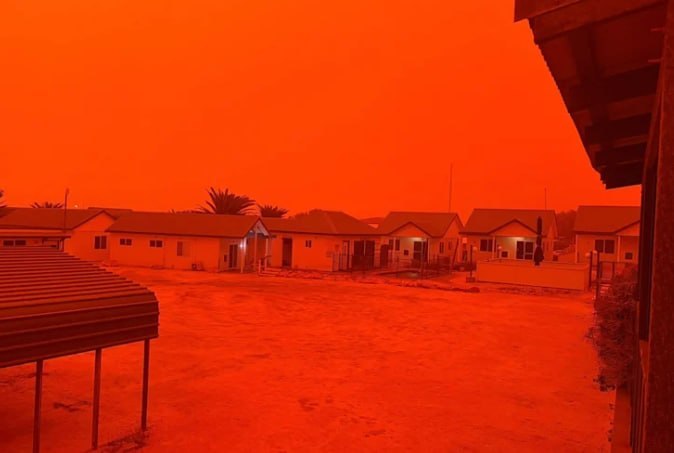 Ավստրալիայի Կարնարվոն քաղաքում երկինքը կարմիր երանգ է ստացել արևադարձային ցիկլոնի հետ կապված հզոր եղանակային երևույթի պատճառով: Ուժեղ քամիները մեծ քանակությամբ փոշի են օդ բարձրացրել, ինչի պատճառով մի քանի ժամվա ընթացքում տարածաշրջանի վրա փոշու խիտ վարագույր է նկատվել, որը երկնքին անսովոր գույն է հաղորդում: