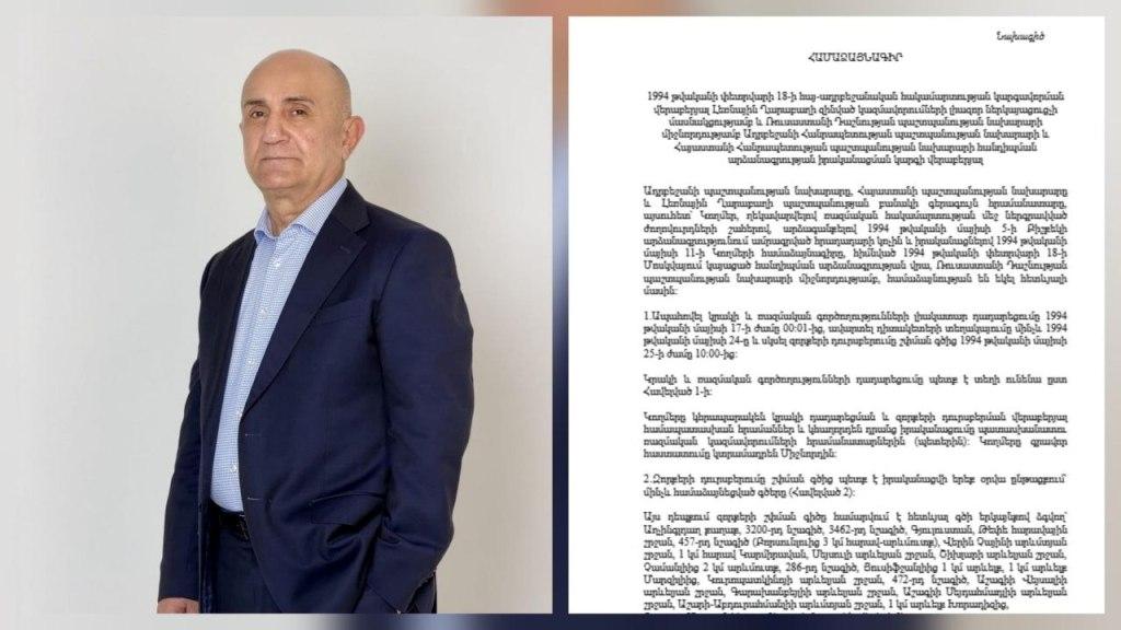 Հրապարակում եմ 1994թ. մայիսի 17-ի համաձայնագիրը: Կարդացե՛ք և տեսե՛ք, թե ինչպես են մսխվել մեր հաղթանակները։