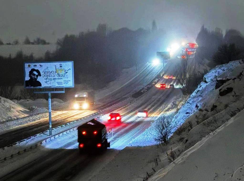 Հարգելի՛ վարորդներ, հորդորում ենք լինել ուշադիր, խստագույնս պահպանել ճանապարհային երթևեկության կանոնները և երթևեկել բացառապես ձմեռային անվադողերով։
