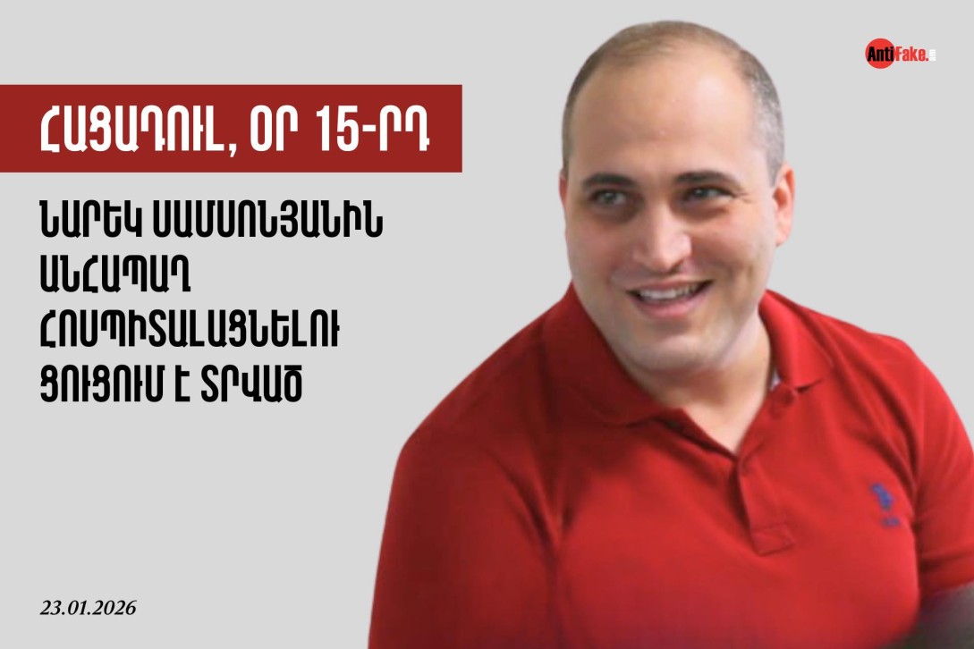 Նարեկ Սամսոնյանը շարունակում է պայքարը ծայրահեղ միջոցով՝ վերջին ուժերով՝ առողջական լուրջ խնդիրների առկայության պայմաններում։ Նրան բժիշկն անհապաղ վիրահատական միջամտություն է ցուցել, անհապաղ հոսպիտալացնելու ուղեգիր տվել, բայց Նարեկը դեռ «Արմավիր» ՔԿՀ-ում է՝ 6-րդ պատժախուց-մենախցում։