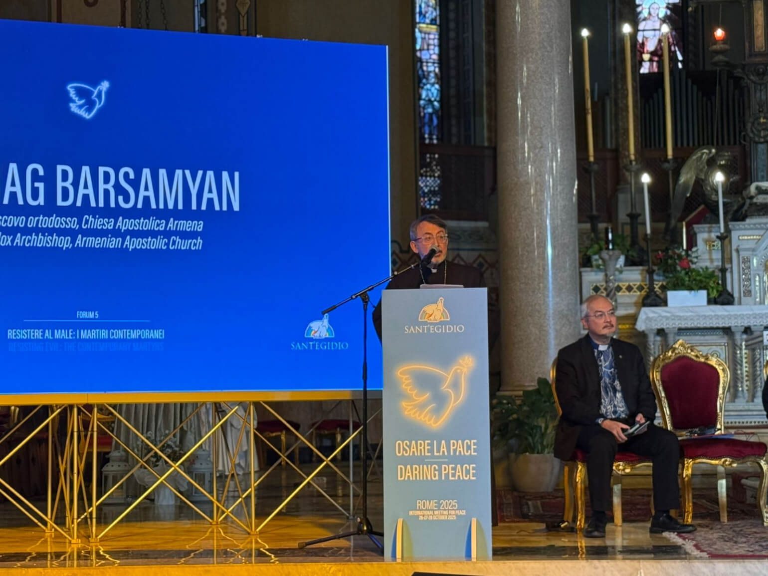 Հոկտեմբերի 26-ից 28-ը Հռոմում հանուն խաղաղության անցկացվող ավանդական միջազգային համաժողովին Մայր Աթոռ Սուրբ Էջմիածնից մասնակցեցին Արևմտյան Եվրոպայում Հայրապետական պատվիրակ, Վատիկանում Ամենայն Հայոց Կաթողիկոսի ներկայացուցիչ Գերաշնորհ Տ․ Խաժակ Արք․ Պարսամյանը և Մայր Աթոռի Միջեկեղեցական հարաբերությունների բաժնի տնօրեն Հոգեշնորհ Տեր Գարեգին Վրդ․ Համբարձումյանը։ Հրավիրված էր նաև Կ. Պոլսի Հայոց Պատրիարք Ամենապատիվ Տ․ Սահակ Արք․ Մաշալյանը։