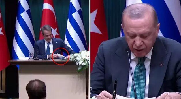 Հունաստանի վարչապետ Կիրիակոս Միցոտակիսը, նախագահ Թուրքիայի Էրդողանի հետ համատեղ մամուլի ասուլիսի ժամանակ, թաշկինակը դնելու տեղ չգտնելով, քիթը սրբել է և դրել իր դիմացի թղթապանակի մեջ: