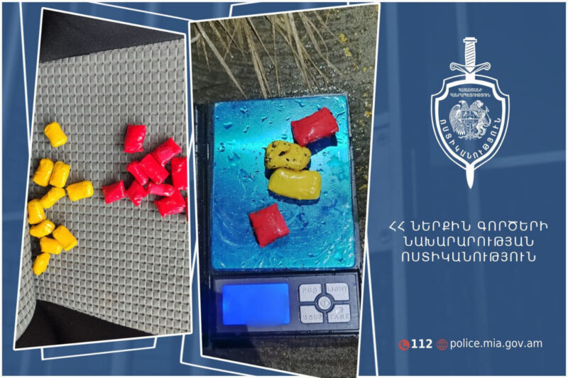 Ապրիլի 8-ին՝ ժամը 16-ին, համայնքային ոստիկանները ձերբակալում են Կոտայքի մարզի Արագյուղի բնակիչ 26-ամյա տղամարդուն և Արարատի մարզի Նոր Խարբերդի բնակիչ 24-ամյա կնոջն ու մեքենայով հանդերձ տեղափոխում բաժին։