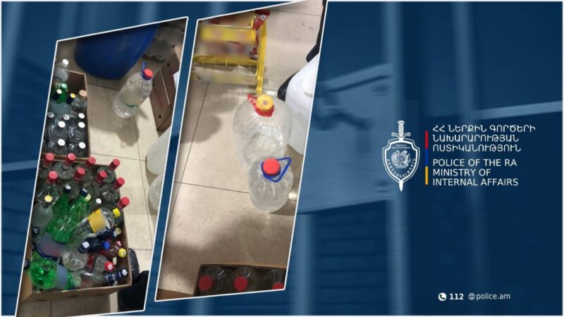 Ապօրինի ձեռնարկատիրության փաստով նախաձեռնված քրեական վարույթի շրջանակում կատարված զննությամբ նշված խանութում հայտնաբերվել են 67 տարբեր տարողությամբ տարաների մեջ լցված օղի: