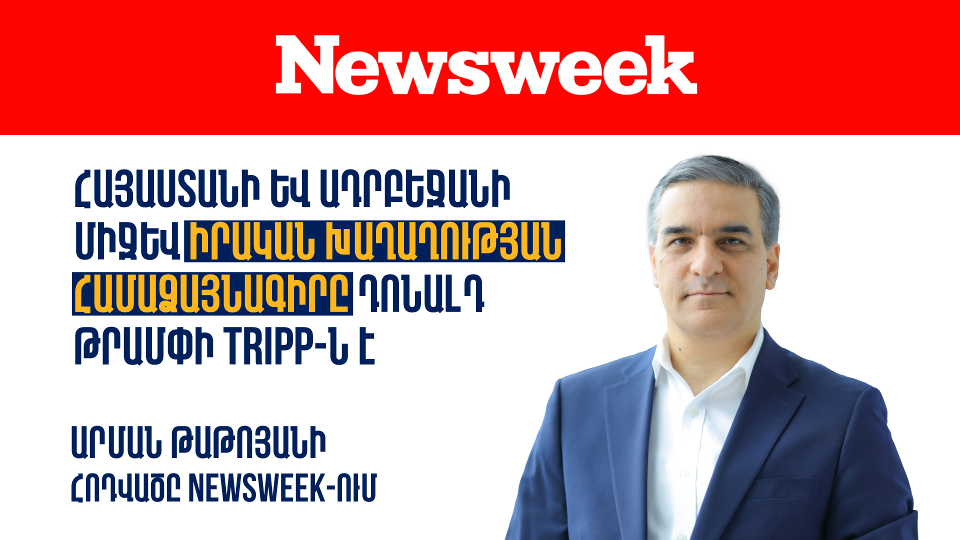 Ամերիկյան հեղինակավոր Newsweek պարբերականը հրապարակել է Արման Թաթոյանի հոդվածը Հայաստանի և Ադրբեջանի միջև խաղաղության գործընթացում «Թրամփի միջազգային խաղաղության և բարգավաճման ուղու» (TRIPP) դերի մասին։