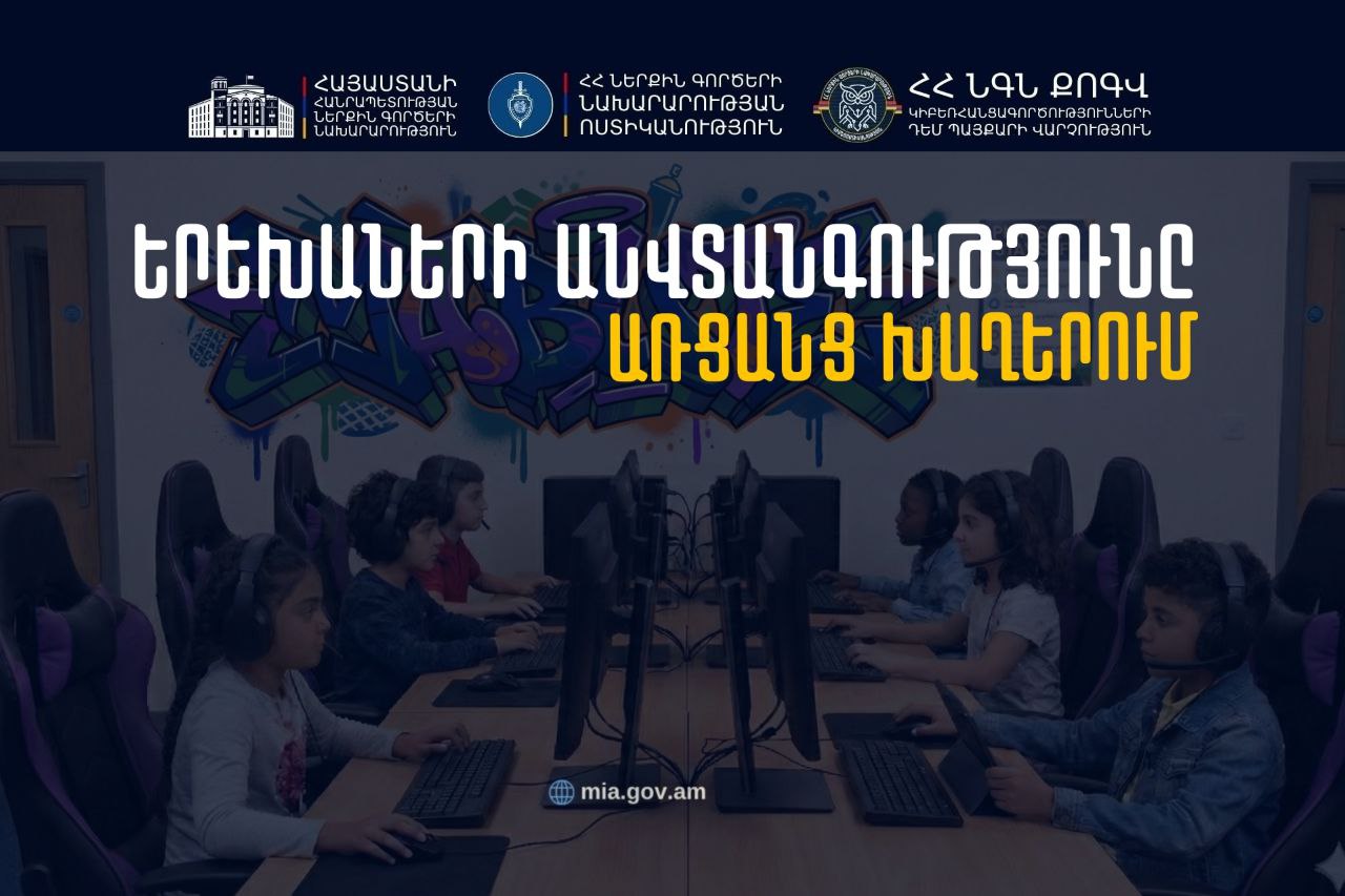 ՀՀ ՆԳՆ Կիբեռոստիկանությունը խորհուրդ է տալիս ծնողներին ակտիվ մասնակցություն ունենալ երեխաների առցանց անվտանգության ապահովման գործում։ Մասնավորապես՝