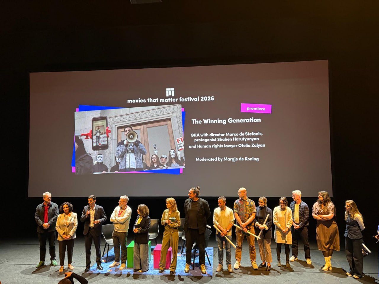 Մարտի 22-ին-ին Հաագայի Movies that Matter-ում՝ Օսկարի որակավորման կինոփառատոնում, կայացել է Շահեն Հարությունյանի մասին պատմող Մարկո Դե Ստեֆանիսի «Հաղթող սերունդ» ֆիլմի պրեմերիան։ Նույն օրը տեղի է ունեցել նաև ֆիլմի համաշխարհային թողարկումը White Rabbit հոսքային հարթակում։