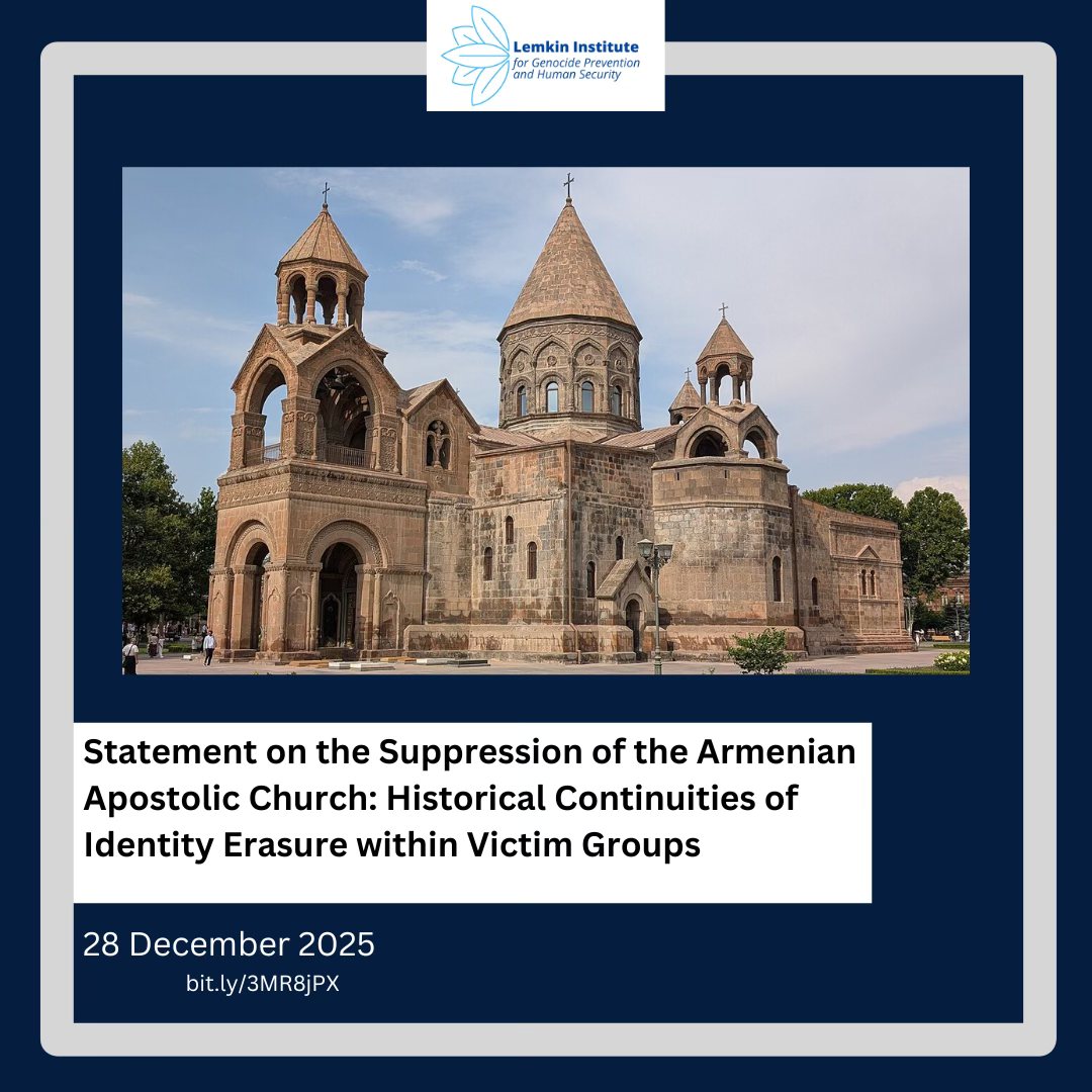 Լեմկինի անվան ցեղասպանության կանխարգելման ինստիտուտը խորը մտահոգություն է հայտնում Հայաստանում Հայ Առաքելական Եկեղեցու նկատմամբ շարունակվող պետական ճնշումների վերաբերյալ, ներառյալ հոգևորականների ձերբակալություններն ու ահաբեկումները, եկեղեցական հաստատությունների թիրախավորումը և պետության կողմից իրավական համակարգի աճող օգտագործումը կրոնական ղեկավարությանը լռեցնելու համար: