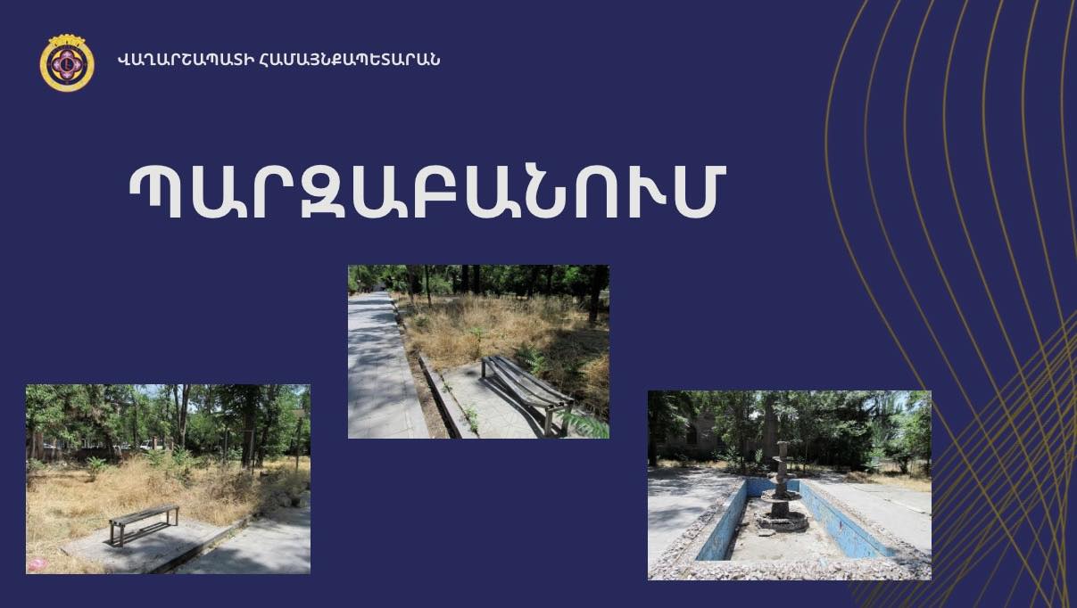 «Վաղարշապատ համայնքի Էջմիածնի կենտրոնական զբոսայգին՝ շուրջ 2.14 հա տարածքով, ՀՀ կառավարության 2005 թվականի նոյեմբերի 15-ի N 1975-Ն որոշմամբ նվիրաբերվել է Հայաստանյաց Առաքելական Եկեղեցուն՝ հստակ պայմաններով․ առանց կառուցապատման և հետագա օտարման իրավունքի՝ բացառապես բարեկարգման, հասարակական հանգստի և հոգևոր-մշակութային կյանքի կազմակերպման նպատակով։