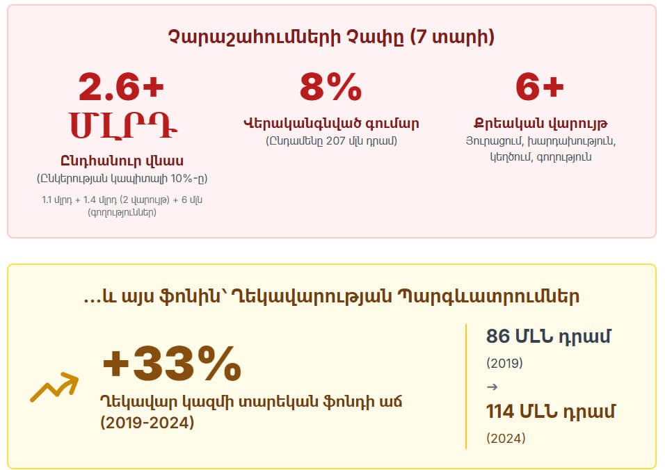 Ընդհանուր առմամբ ԲԷՑ-ում կատարված հանցագործությունների արդյունքում պետության 2,6 մլրդ դրամի վնասից վերադարձվել է ընդամենը 8 տոկոսը՝ 207 մլն դրամ։