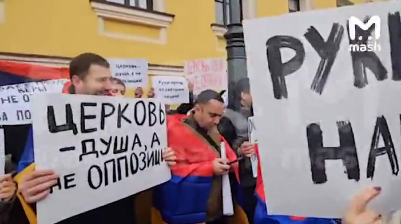 «Նիկոլը դավաճան է», «Ձեռքերդ հեռու ազգի սրբավայրից», «Եկեղեցին և ժողովուրդը միասնական են». բողոքի ակցիա՝ ՌԴ-ում Հայաստանի դեսպանատան մոտ. տեսանյութ