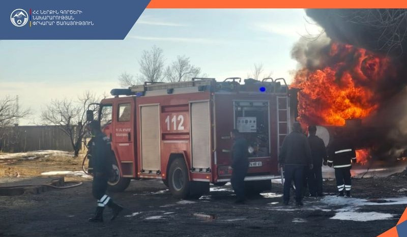 Նախնական տվյալներով այրվում է պահեստային բաքերը և մեկ բեռնատար ավտոմեքենա։ Իրականացվում է հրդեհաշիջում։