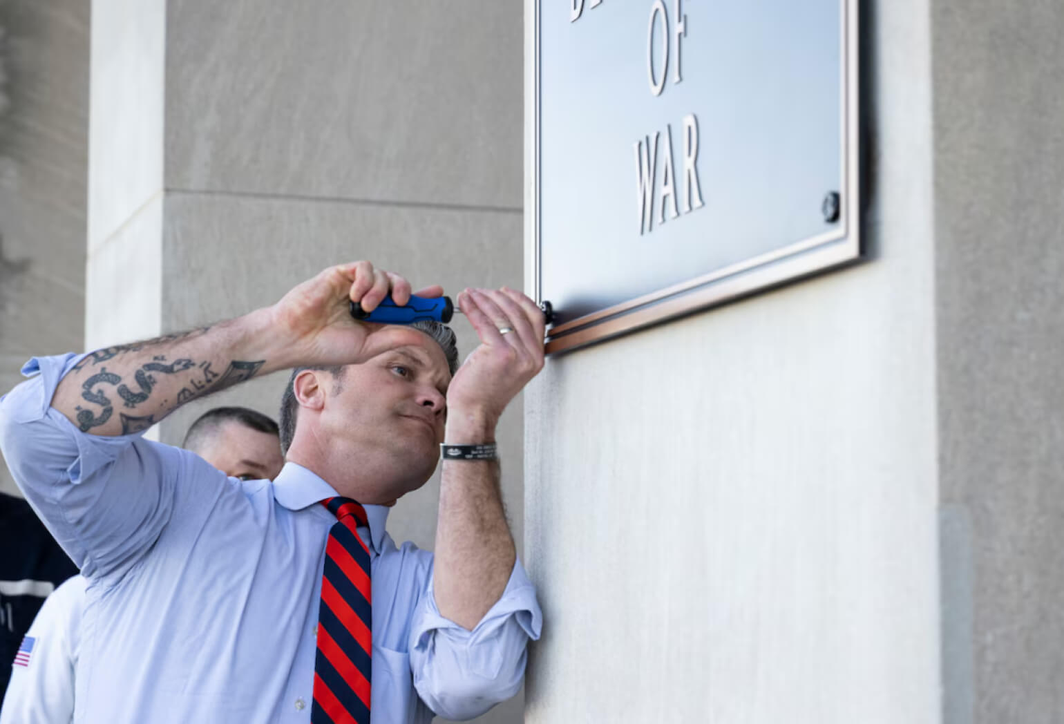 Պենտագոնի ղեկավար Փիթ Հեգսեթը Պենտագոնի շենքի ցուցանակը փոխարինել է նորով, որի վրա գրված է գերատեսչության նոր անվանումը՝ Պատերազմի դեպարտամենտ, հաղորդում է դեպարտամենտի մամուլի ծառայությունը: