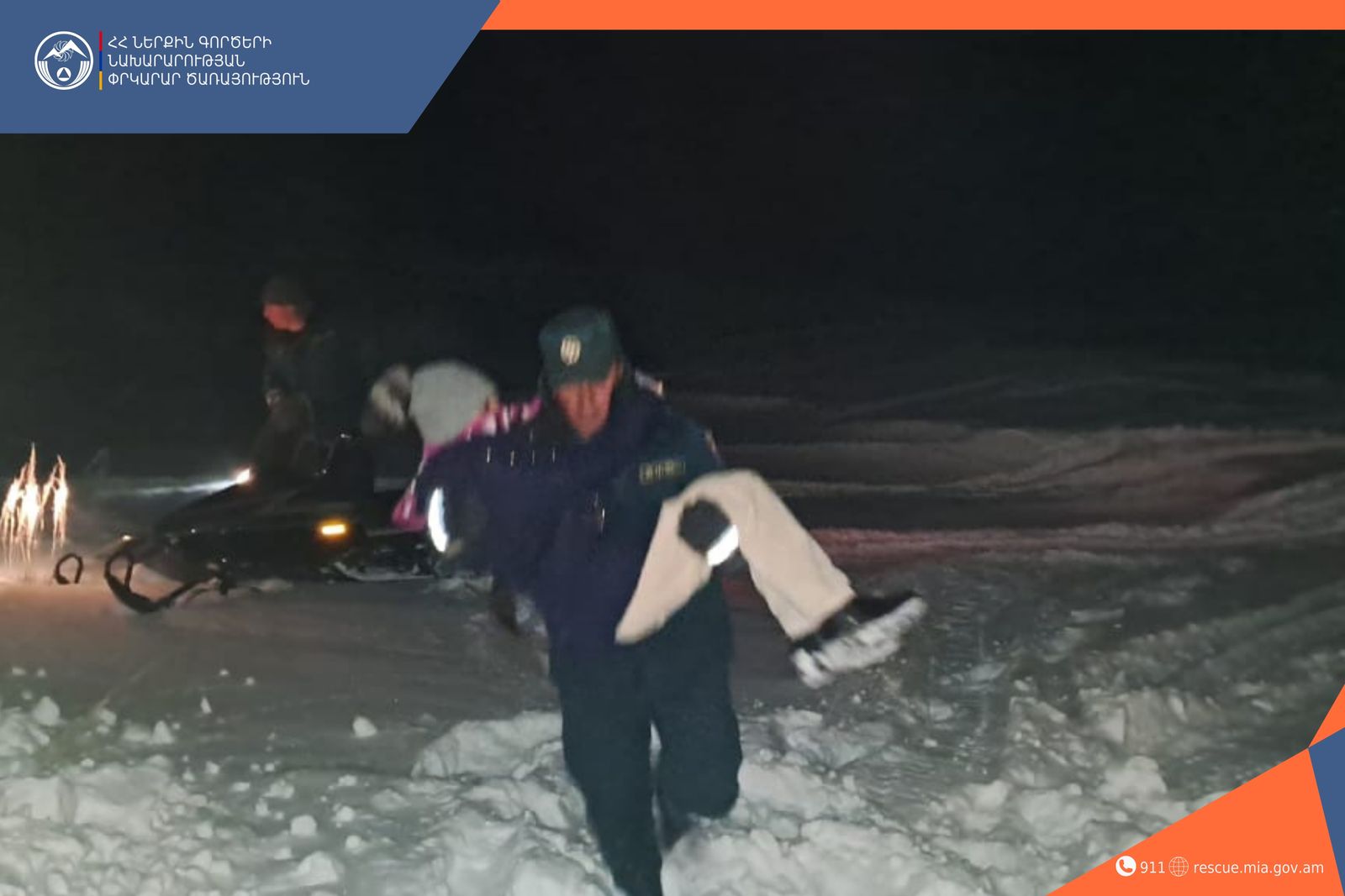 Փրկարարները 3 երեխաներին և ծնողներին ձնագնացով շուրջ կես կիլոմետր մոտեցրել են շտապօգնության ավտոմեքենային, ինչից հետո պարեկների ուղեկցությամբ շտապօգնության խումբը նրանց տեղափոխել է բժշկական կենտրոն։ Երեխաների կյանքին վտանգ չի սպառնում։