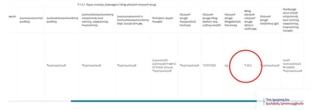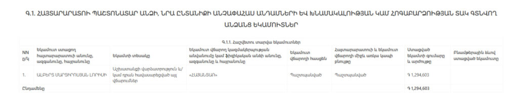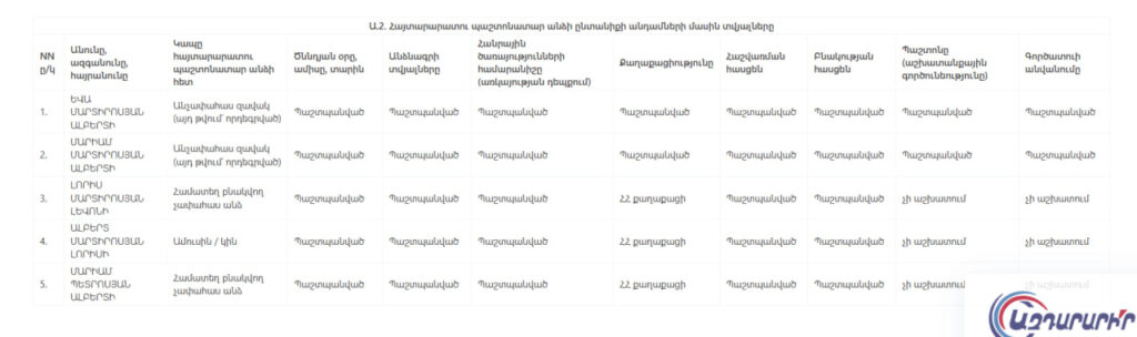 Մարտիրոսյանի ստացած վարկերի եւ փոխառությունների մայր գումարի մնացորդը հաշվետու տարվա դեկտեմբերի 31-ի դրությամբ կազմել է 150 հազար դրամ։