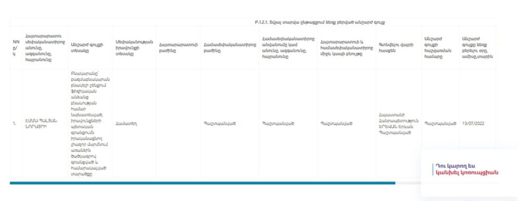 «Ժողովուրդ» օրաթերթը գրում է. «Ազգային ժողովի ՔՊ-ական պատգամավոր Էմմա Պալյանը, որը հանրության ուշադրության կենտրոնում էր հայտնվել սկանդալային այն դեպքից հետո, երբ ամուսնուն նշանակել էր իր օգնական, որպեսզի նա «դրսում չմրսի» (ինչը պայթեցրեց «Ժողովուրդ» օրաթերթը), իր հայտարարագիրը լրացրել է սխալներով: