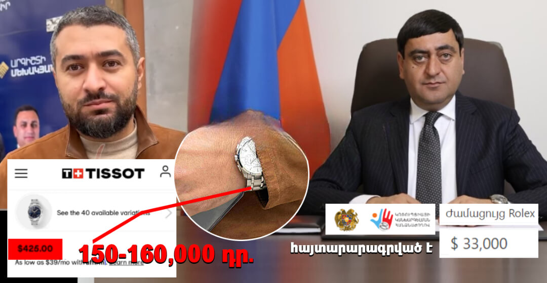 Արմեն Կոտոլյանը կրում էր Tissot հայտնի բրենդի ժամացույց: Նմանատիպ ժամացույցը կայքում վաճառվում է 425 ԱՄՆ դոլար՝ 150-160 հազար դրամ, մանրածախ գնման դեպքում։
