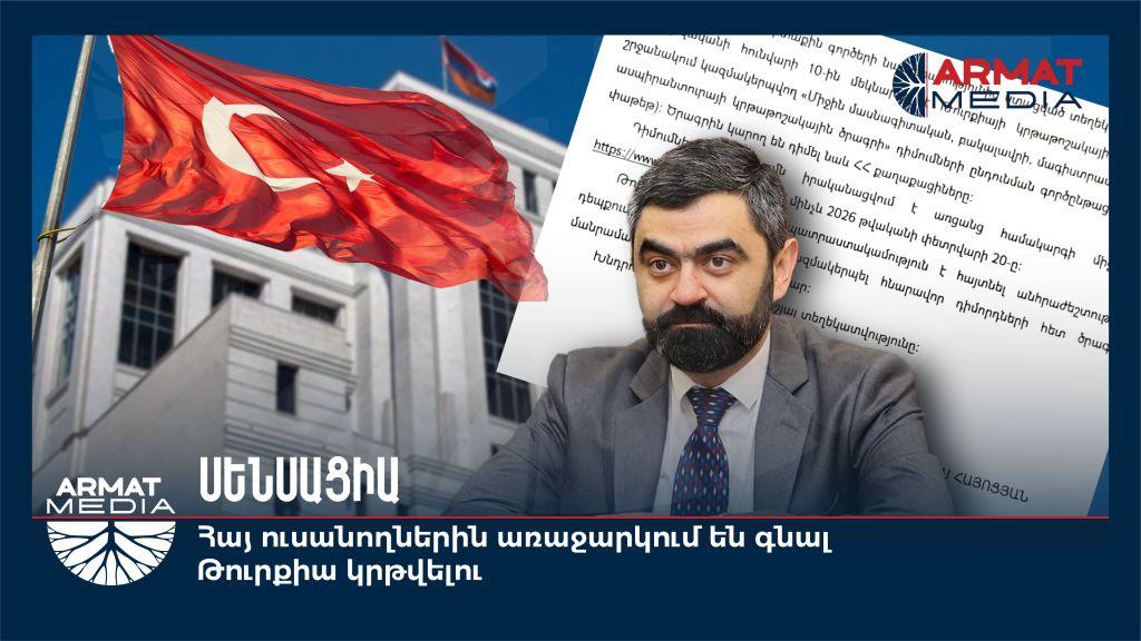 Armat Media-ին բուհերի ռեկտորներից մեկը տրամադրել է Գիտության կոմիտեի նախագահ Սարգիս Հայոցյանի շրջաբերականը, որով առաջարկվում է հայ ուսանողներին մասնակցել Թուրքիայի կրթաթոշակային ծրագրին: