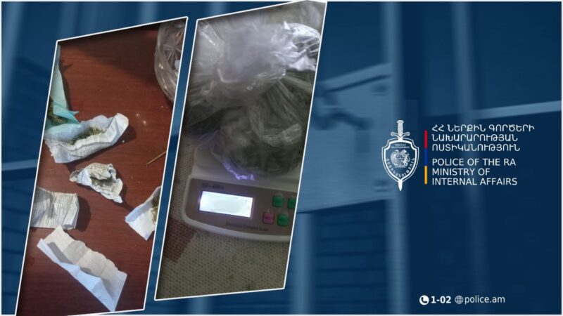 Նախաձեռնված քրեական վարույթի շրջանակում կատարված զննությամբ 56-ամյա տղամարդու տանը հայտնաբերվել է 169 գրամ մարիխուանա տեսակի թմրամիջոց: Կատարվում է նախաքննություն: