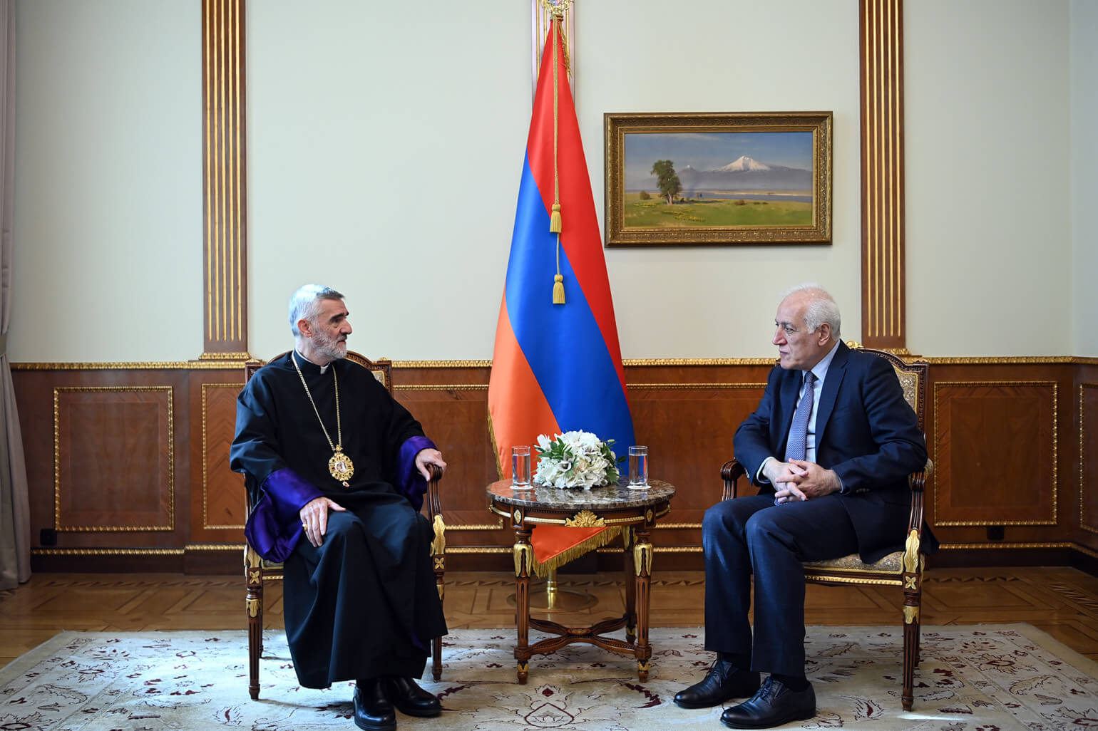 Նախագահ Խաչատուրյանը շնորհակալություն է հայտնել թանկարժեք նվերի համար և նշել, որ իր համար մեծ պատիվ է ընդունել այն։ Հանրապետության նախագահը բարձր է գնահատել Արամ Ա Կաթողիկոսի հոգևոր և ազգային գործունեությունը՝ ընդգծելով նրա մշտական նվիրվածությունը համահայկական միասնության և մեր ժողովրդի արժեհամակարգի պահպանման գործում։ Նախագահն իր հերթին խնդրել է իր ջերմ ողջույններն ու բարեմաղթանքները փոխանցել Վեհափառ Հայրապետին։